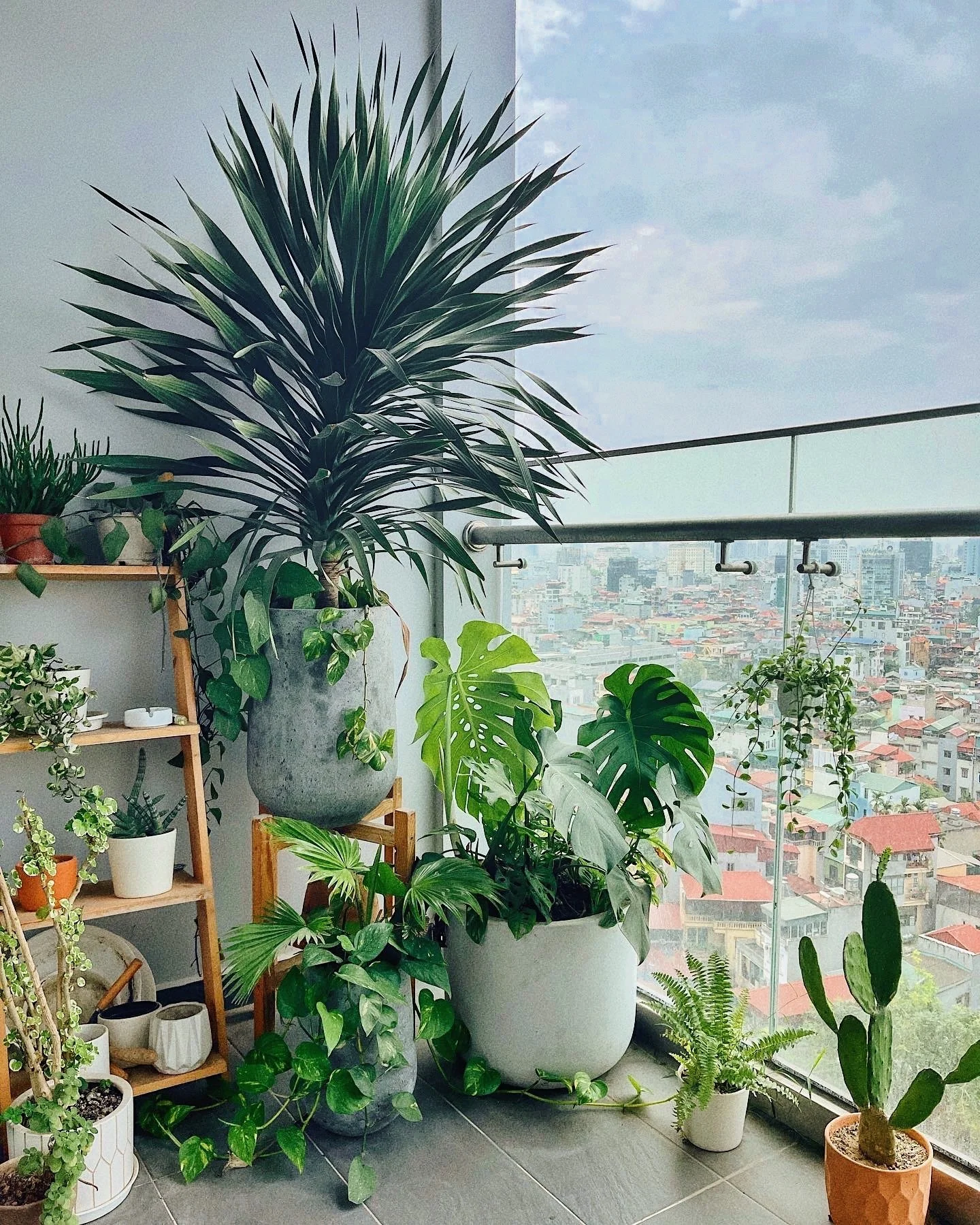 Góc ban công với nhiều cây xanh và view ngắm thành phố là nơi yêu thích của Ninh Tito